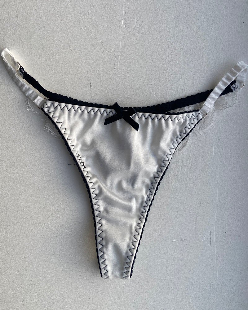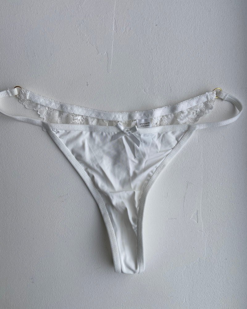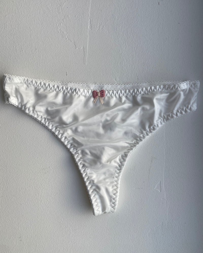 String blanc en satin avec petit noeud – Taille S