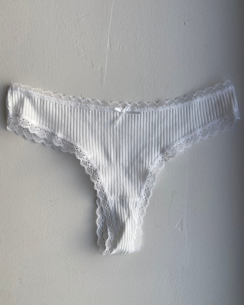 String blanc en coton avec petit noeud – Taille S
