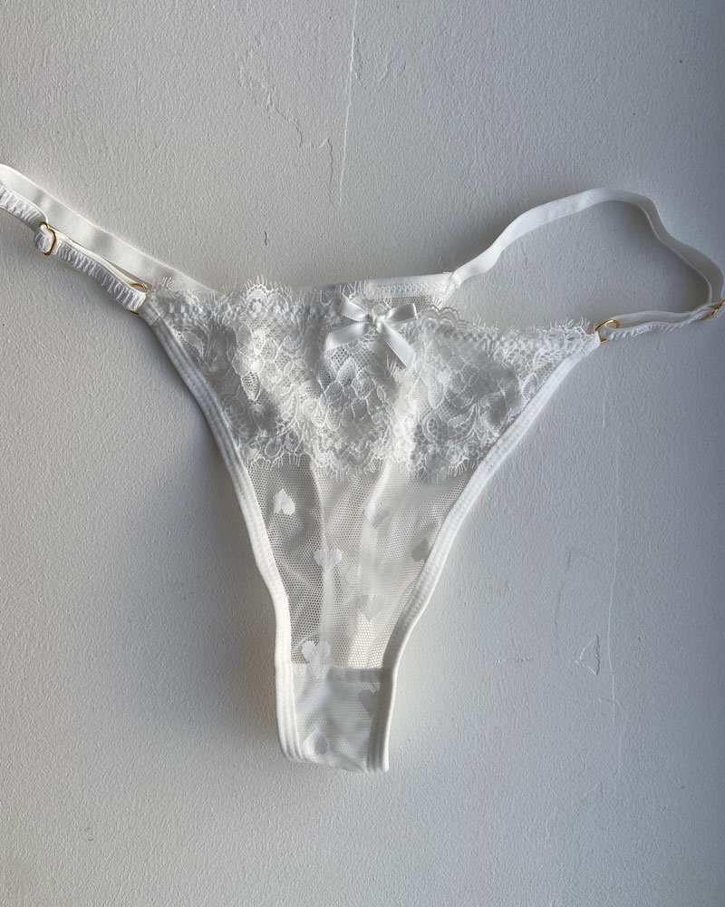 String blanc transparent en dentelle coeurs – Taille S