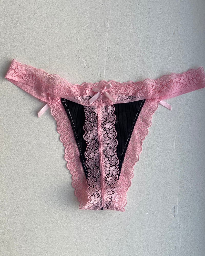 String dentelle rose et noir – Taille S