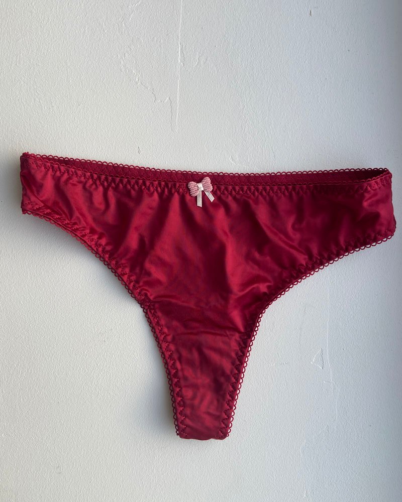 String rouge en satin avec petit noeud – Taille S