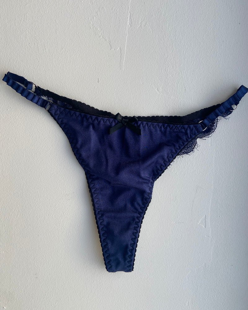 String noir en satin avec petit noeud – Taille S